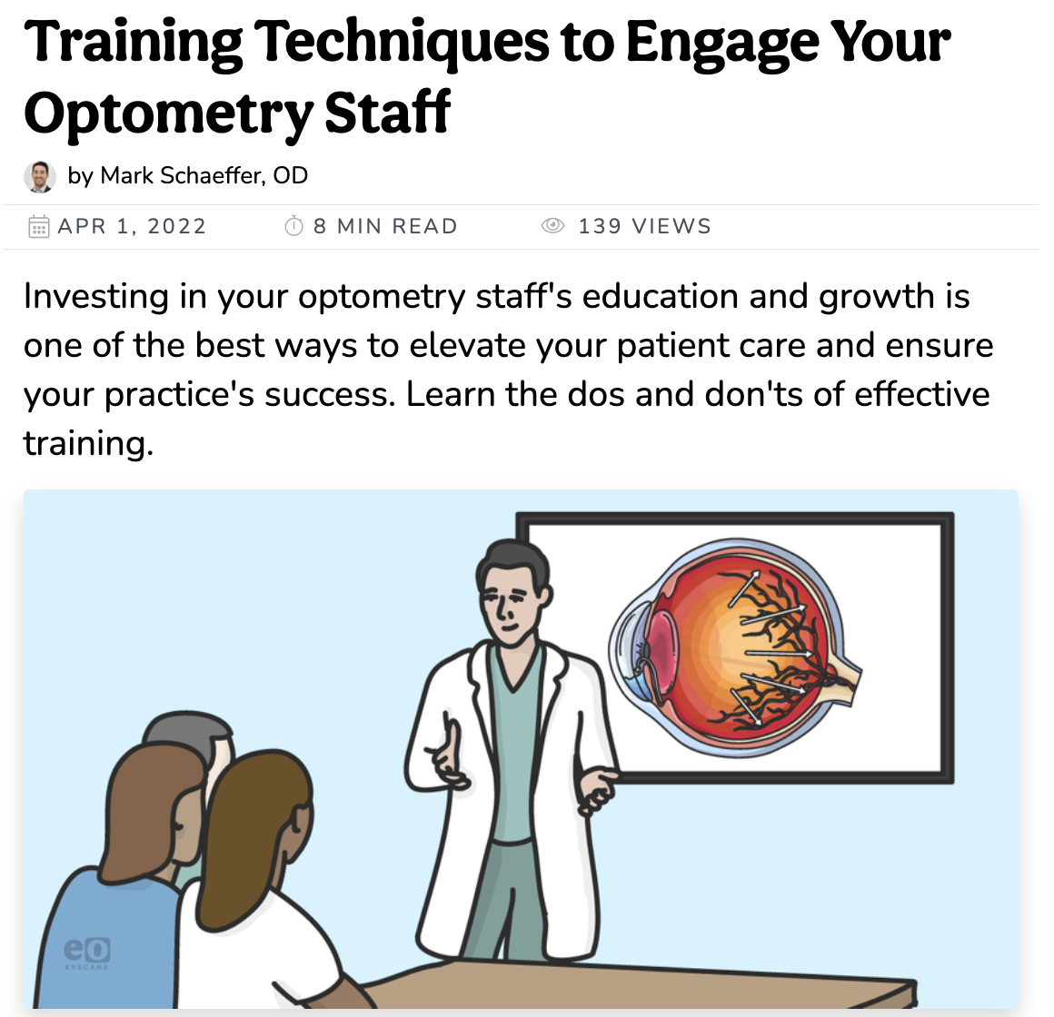The optometric staff is the lifeblood of any practice. They interact and advocate for the patient, doctor, and practice on a consistent if not constant basis. Here are some tips to make sure your staff is getting the best education to provide the highest level of care in your office.